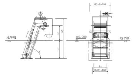 XY回轉(zhuǎn)式機(jī)械格柵是由耙齒裝配成一組回轉(zhuǎn)格柵鏈。在電機(jī)減速器的驅(qū)動(dòng)下經(jīng)鏈輪傳動(dòng)驅(qū)耙齒鏈,進(jìn)行回轉(zhuǎn)運(yùn)動(dòng)。耙齒鏈的下部浸沒于排水溝槽中,當(dāng)耙齒鏈運(yùn)轉(zhuǎn)到設(shè)備的上部時(shí),由于槽輪和彎軌的導(dǎo)向,使每組耙齒之間產(chǎn)生相對(duì)自清運(yùn)動(dòng),絕大部分固體物質(zhì)靠重力落下。另一部分則依靠清掃器的反向運(yùn)動(dòng)把粘在耙齒上的雜物清掃干凈。按水流方向耙齒鏈類同于網(wǎng)柵,在耙齒鏈軸上裝配的耙齒間隙可以根據(jù)使用條件進(jìn)行選擇。當(dāng)耙齒把流體中的固態(tài)懸浮物分離后可以保證水流暢通流過。整個(gè)工作過程是連續(xù)的,也可以是間歇的。